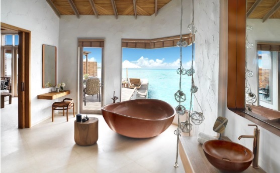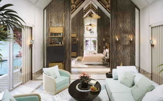 96 villa között megtalálható a kerti, a beach, a vízi villa, családi villák is, valamint van egy 3 hálószobás Elnöki Vízi Villájuk is. A 3 étterem - nemzetközi, japán és olasz - számos olyan ételt kínál,