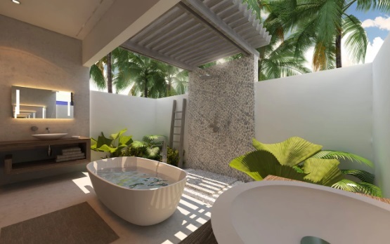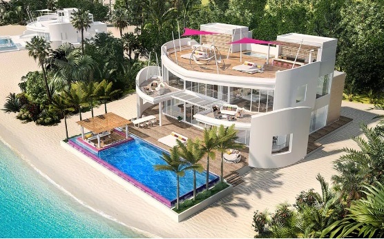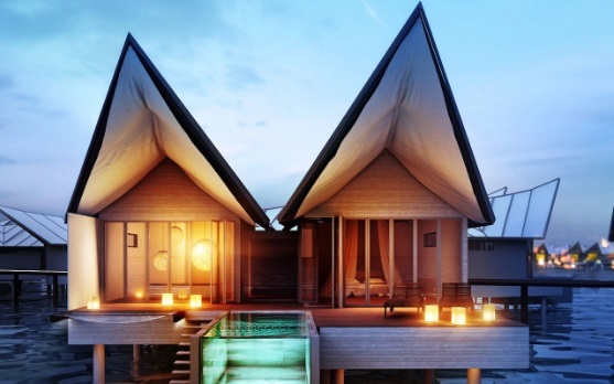 medencék pedig egy karnyújtásnyira vannak a fehérbe öltöztetett ágyaktól. A szálláshely párok és családok számára is alkalmas. A szigeten megtekinthető lesz egy víz alatti szobrászati múzeum, amelyet a brit