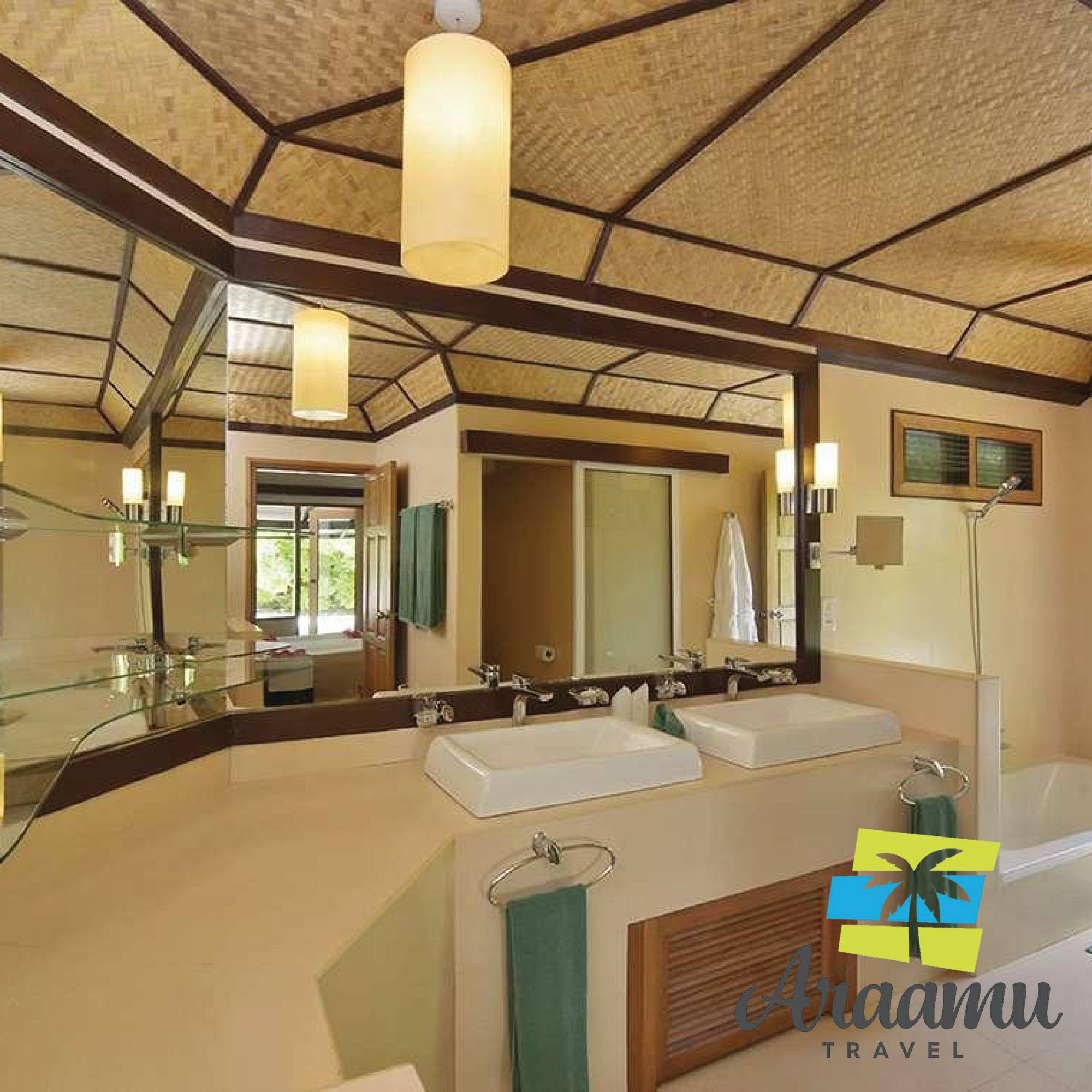 Az egyedülálló szárazföldi bungalók a parton találhatóak, és a hely szellemének megfelelően berendezettek. Nyitott fürdőszobásak, zuhannyal, WC-vel és fürdőköntössel. Továbbá található itt egy lakrész szatellit tv-vel, kis hűtőszekrénnyel, kávé/teafőzővel, klímával és terasszal, melyen ülőalkalmatosságok és hinta kapott helyet a tengerre néző oldalon. A vízi bungalók is komfortosan berendezettek és plusz fürdőkáddal rendelkeznek.