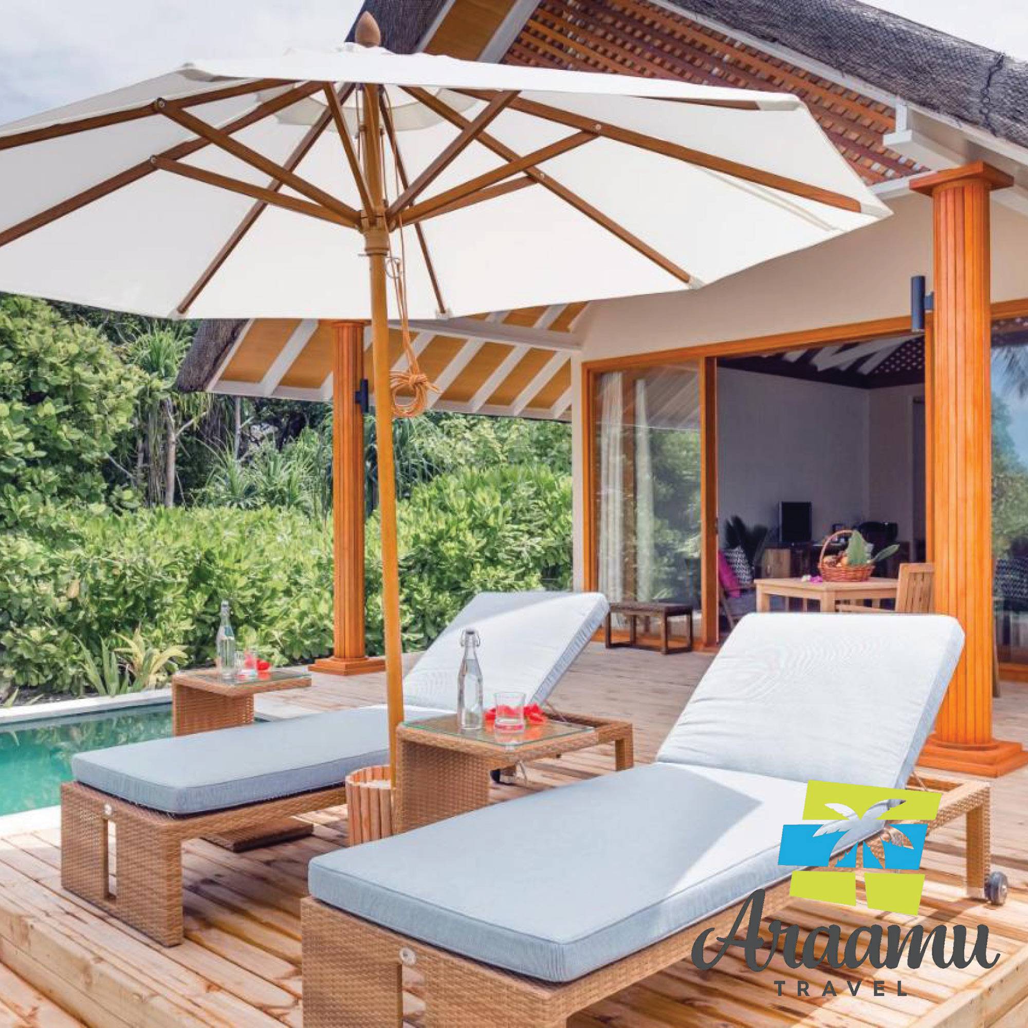 72db önállóan álló Beach Villája, melyből 20-hoz tartozik medence is, valamint 35 víz feletti bungalow-ja van.