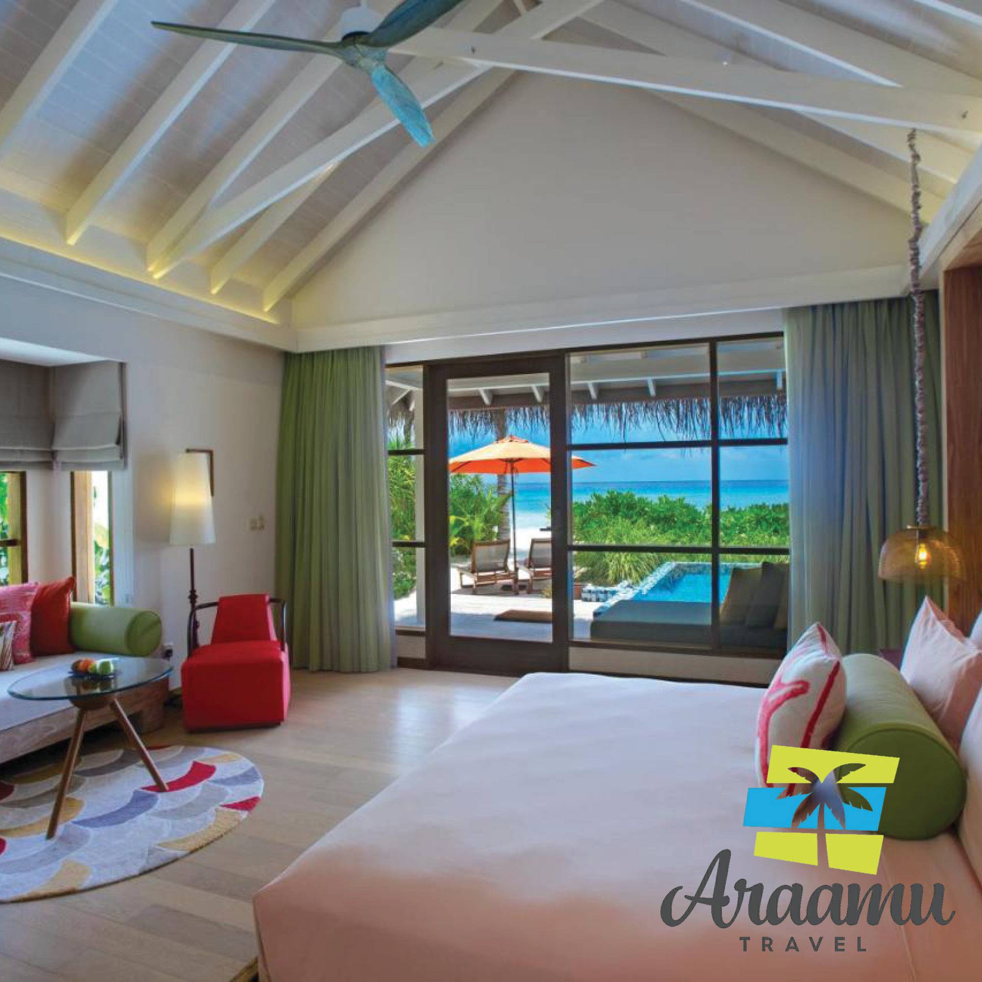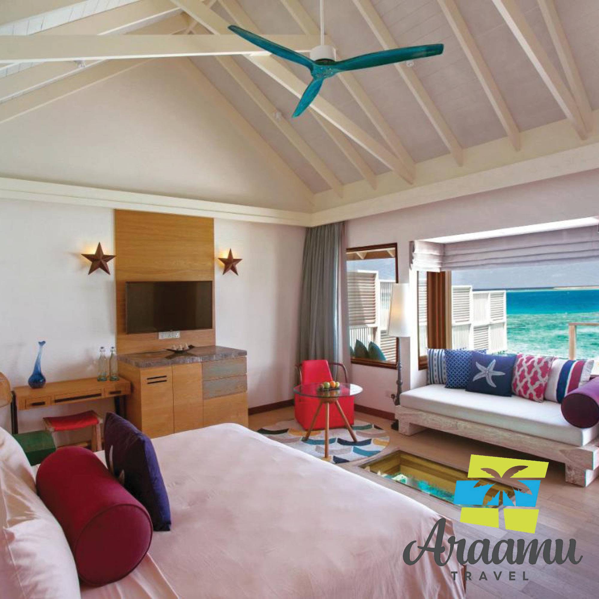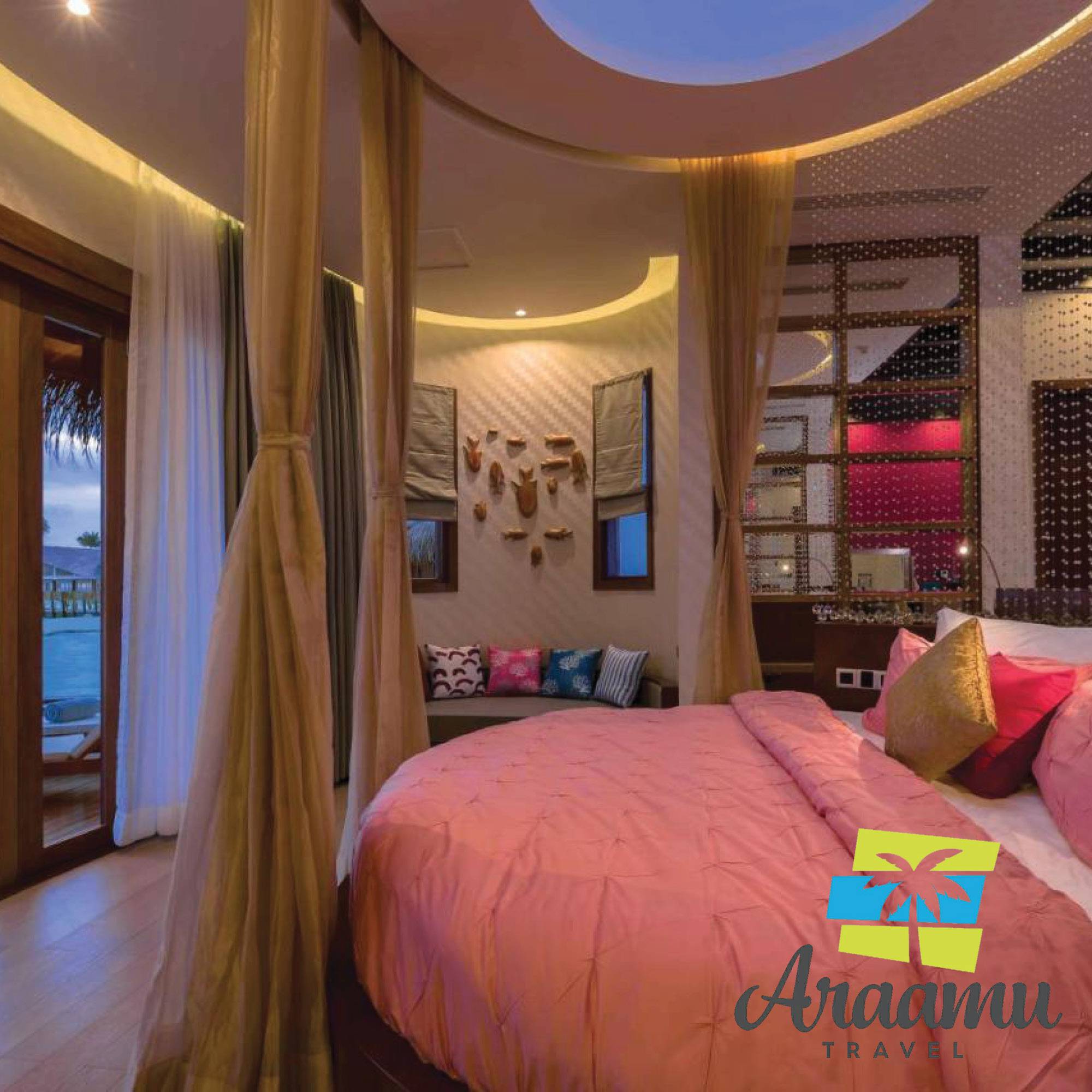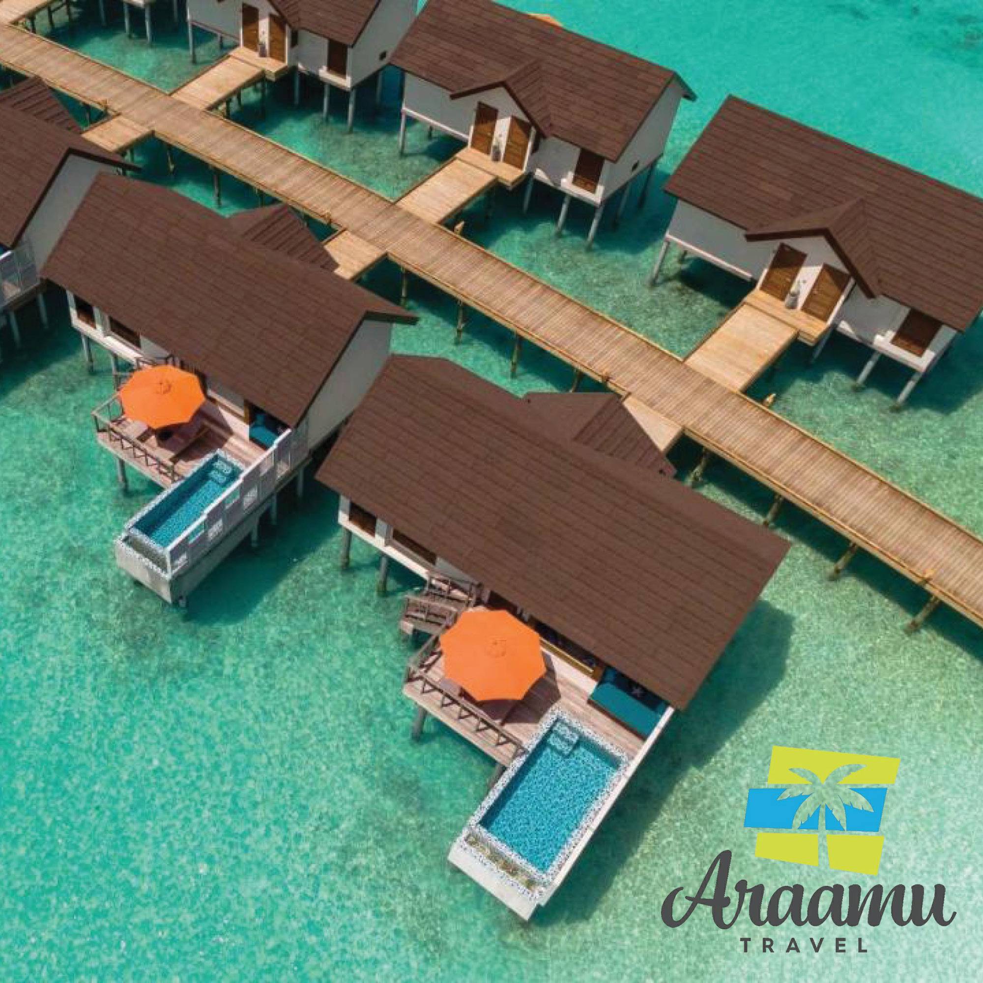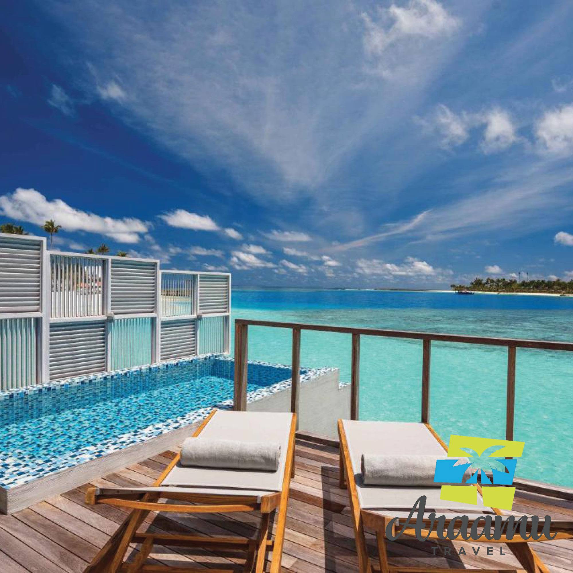 Honeymoon Water Suite medencével (6db): kb. 102 m2, kizárólag nászutasoknak fenntartott víz feletti lakosztály, minimum 3 éjszaka esetén foglalható, 13 m2-es medence tartozik hozzá. Közvetlen check-in a villában, welcome pezsgő, falatkák és gyümölcs kosár kíséretében. Ingyenes étkezési lehetőség mindhárom étteremben: The Courtyard, Just Grill, Simply Veg (ebéd és vacsora esetén), turn-down szerviz minden este, 4 éjszakánként két páros masszázs az ELENA Spa-ban.