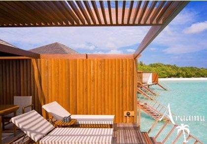 A 62 nagyszerűen, modern eleganciával berendezett szállodai villa a lagúna türkizkék vízére épült cölöpökre, és a szigettel stég összeköttetésben van. Felszereltségük: fürdő kabinos zuhannyal és leválasztott WC-vel, fürdőköntös és papucs, hajszárító, telefon, WLAN (térítésmentes), plazma-tv, DVD-lejátszó a lakosztályokban, iPod-dokkoló állomás, minibár, kávé-/teafőző, szobai széf, klímaberendezés, terasz nagy heverővel, napozóágyak, étkezőreész és közvetlen tengeri lejáró. Minden nap 2 üveg ásványvíz ingyenesen biztosított.