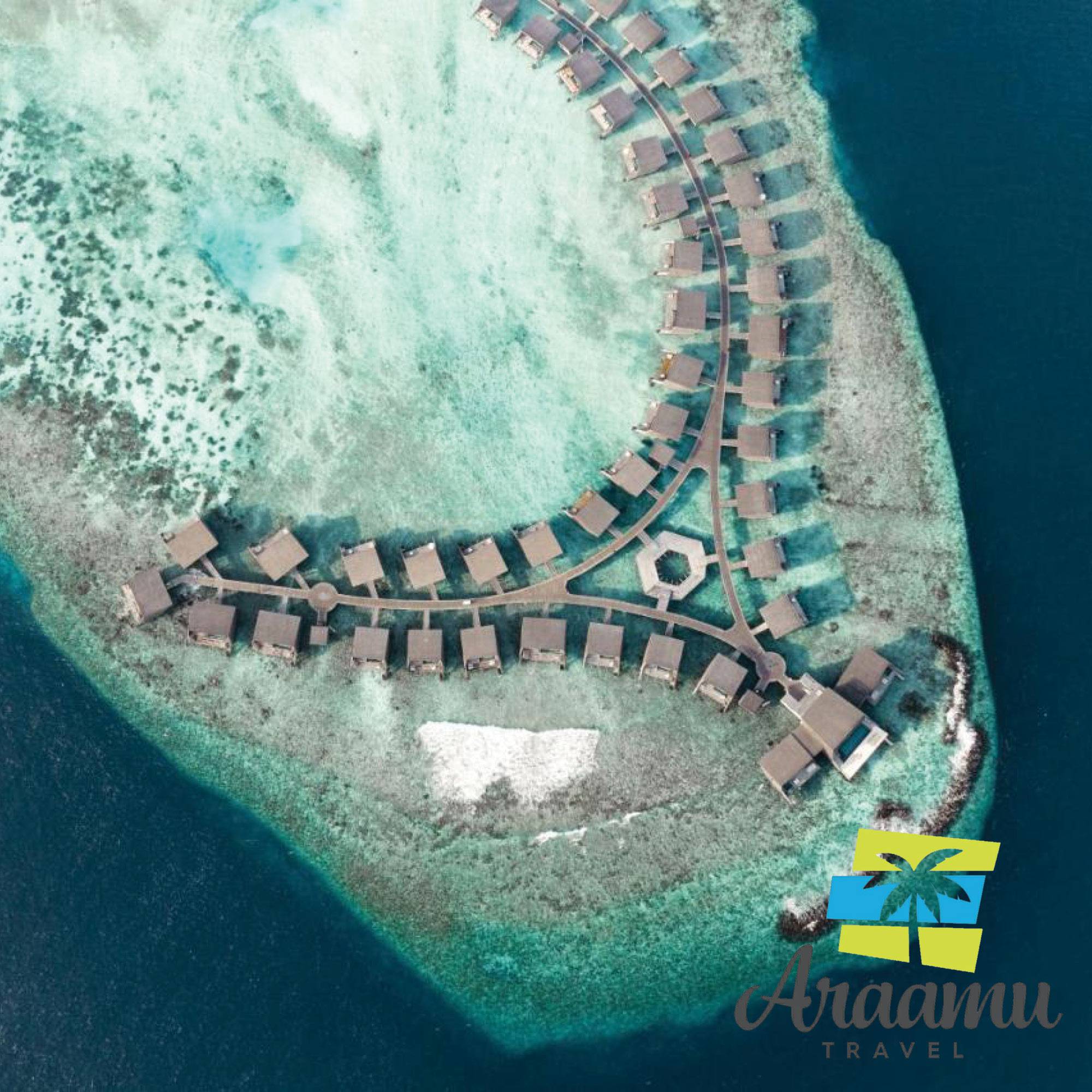 A 77 villa padlóig érő ablakaival és privát medencével világos színekkel kialakított, modern, stílusosan berendezett lakhelyek vagy a fehér homokos tengerparton, vagy a tengerben, cölöpökre építve. Felszereltség: kingsize-méretű ágy, nagy fürdőszoba külön esőzuhannyal, hajszárító, fürdőköntös, telefon, WLAN (térítésmentes), szatellit-LCD-tv, bose-surround-rendszer, széf, minibár, kávé- és teafőző, klímaberendezés és terasz.