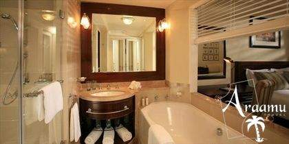 91–100 m², lakosztály, földszinti, tengerre néző kilátás, nemdohányzó, külön hálószoba, külön nappali, gardróbrész, zuhanyzó, kád, külön WC, hajszárító, kerámia padlóburkolat, egyénileg szabályozható légkondicionáló, minibár (térítés ellenében), széf, műholdas TV, bútorozott terasz, közvetlen kijárat a strandra.